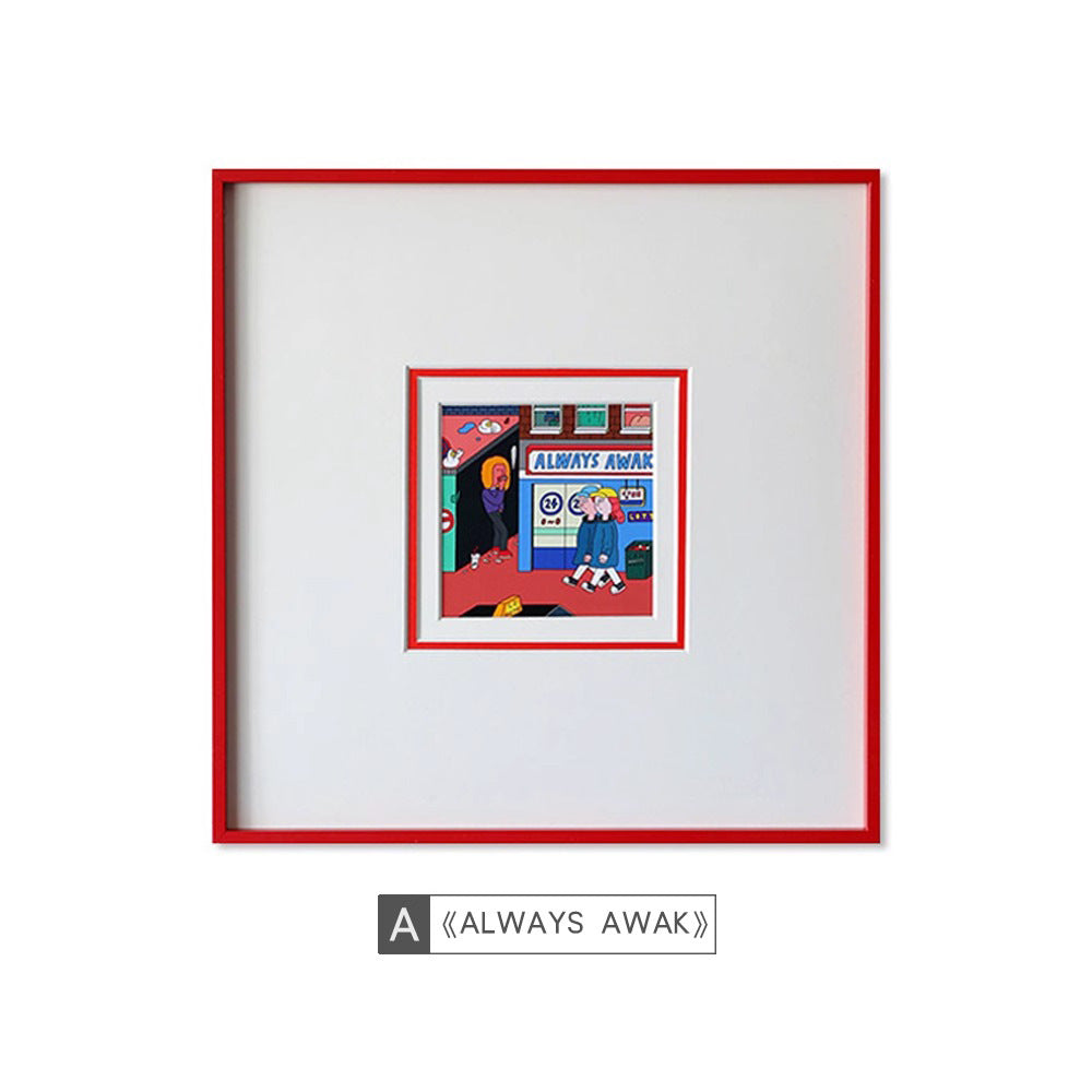 Dopamine Cartoon Doodle Kids Room Wall Art - Minimalist Abstract Nursery Decor, Playful Teen Bedroom , Unique Wall Art for Living Room Dining Wall Hanging
