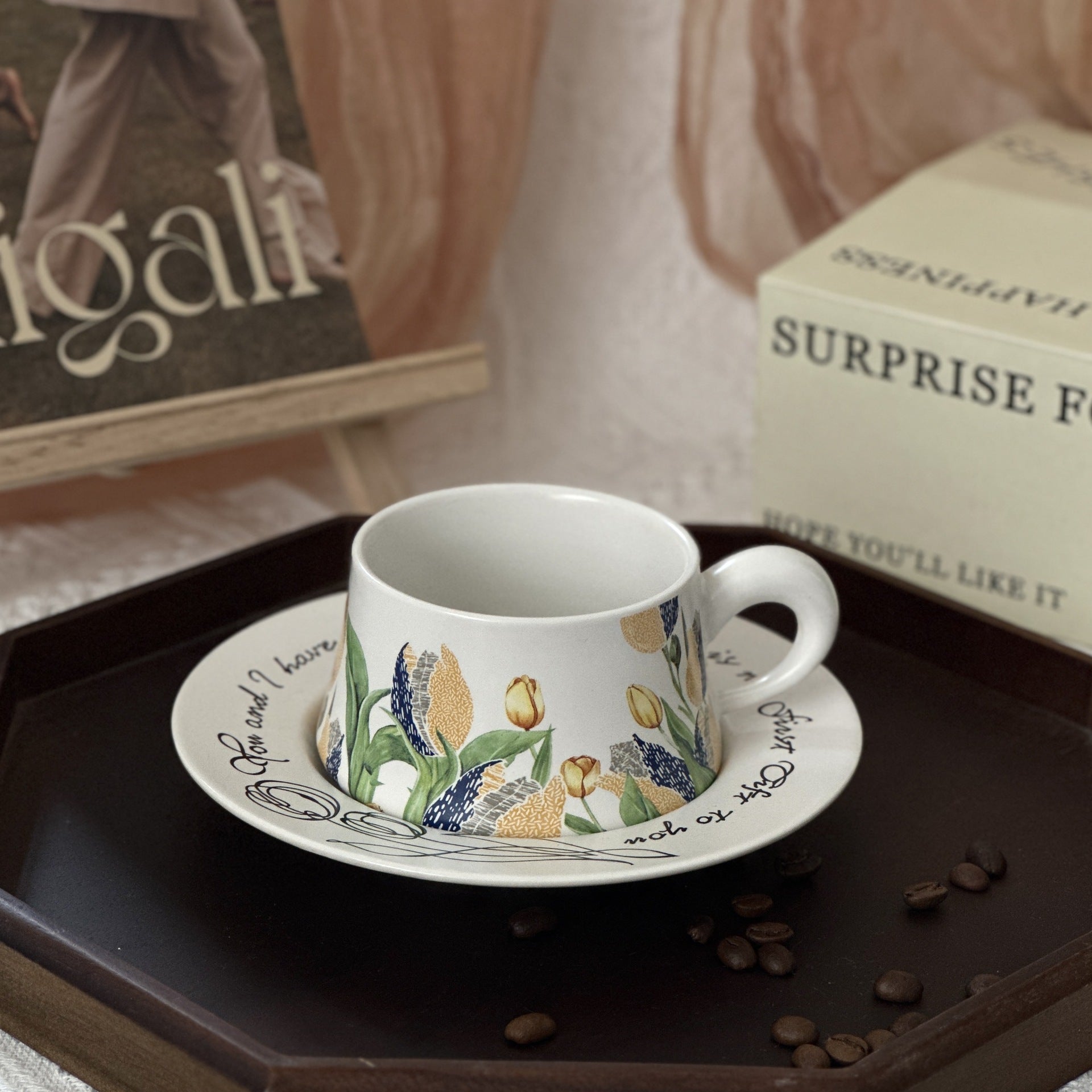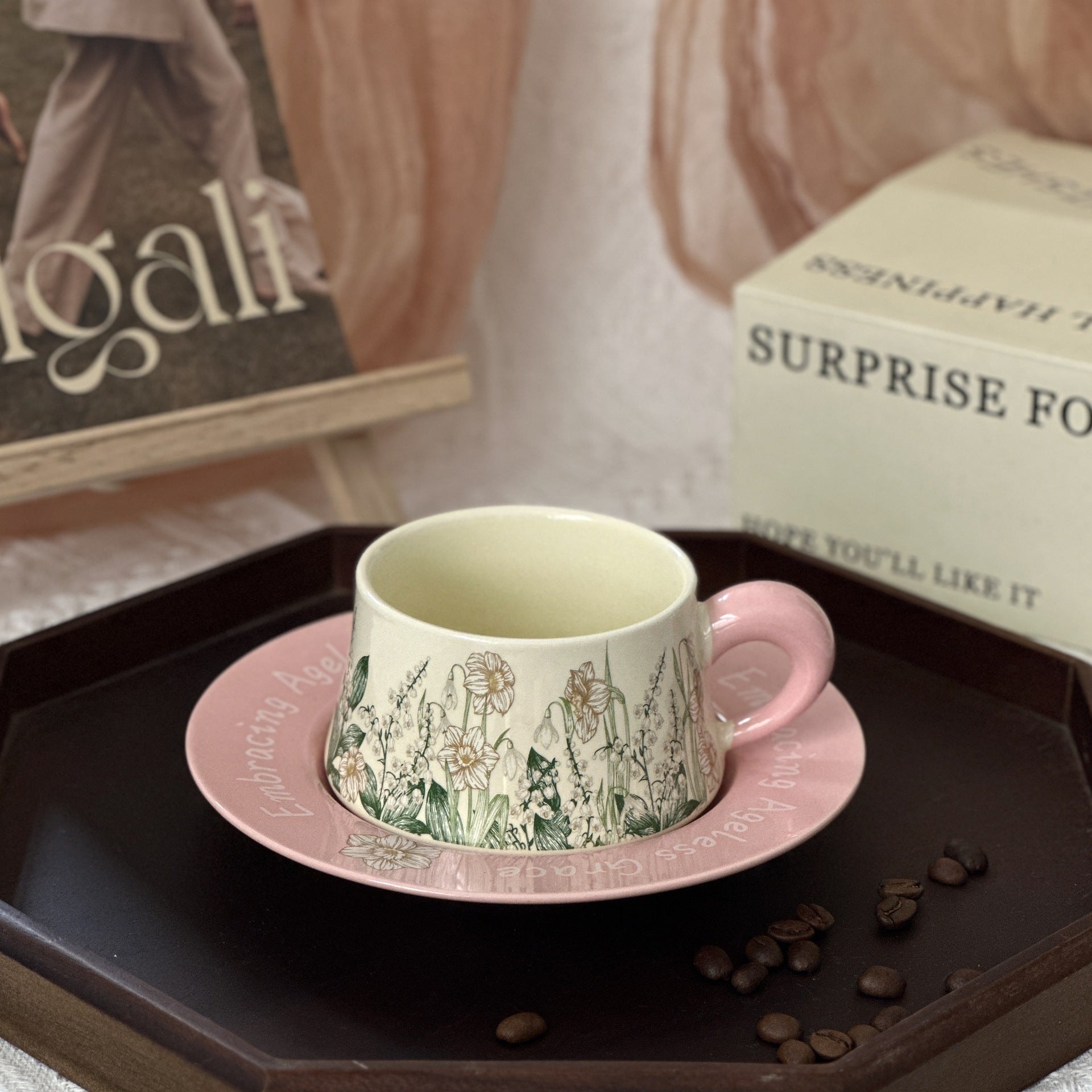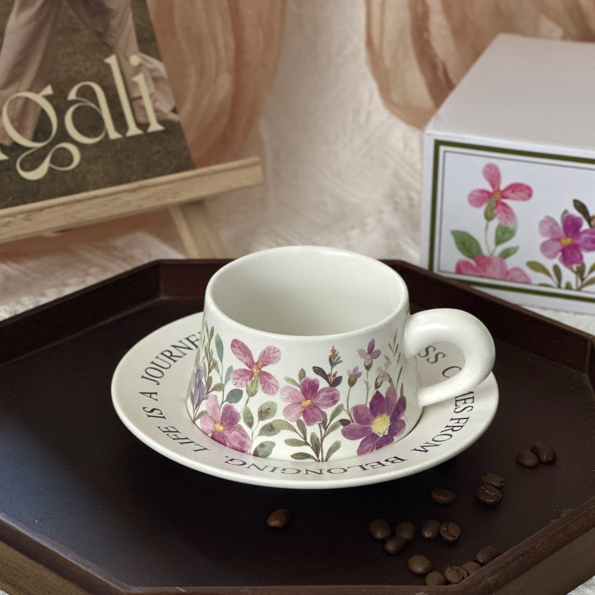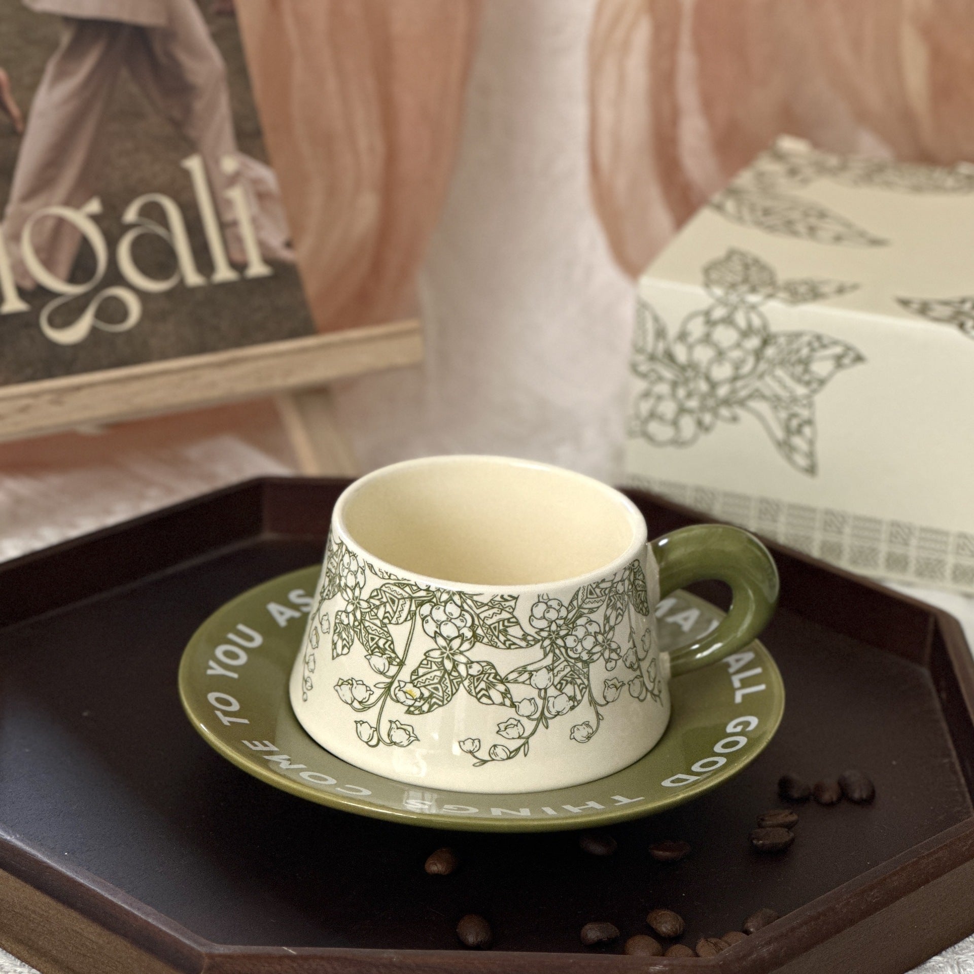 Product Name: Garden Series Ceramic Coffee Cup & Saucer Set - French Vintage Floral Design, Microwave & Dishwasher Safe, 8.1 oz Multifunctional Drinkware