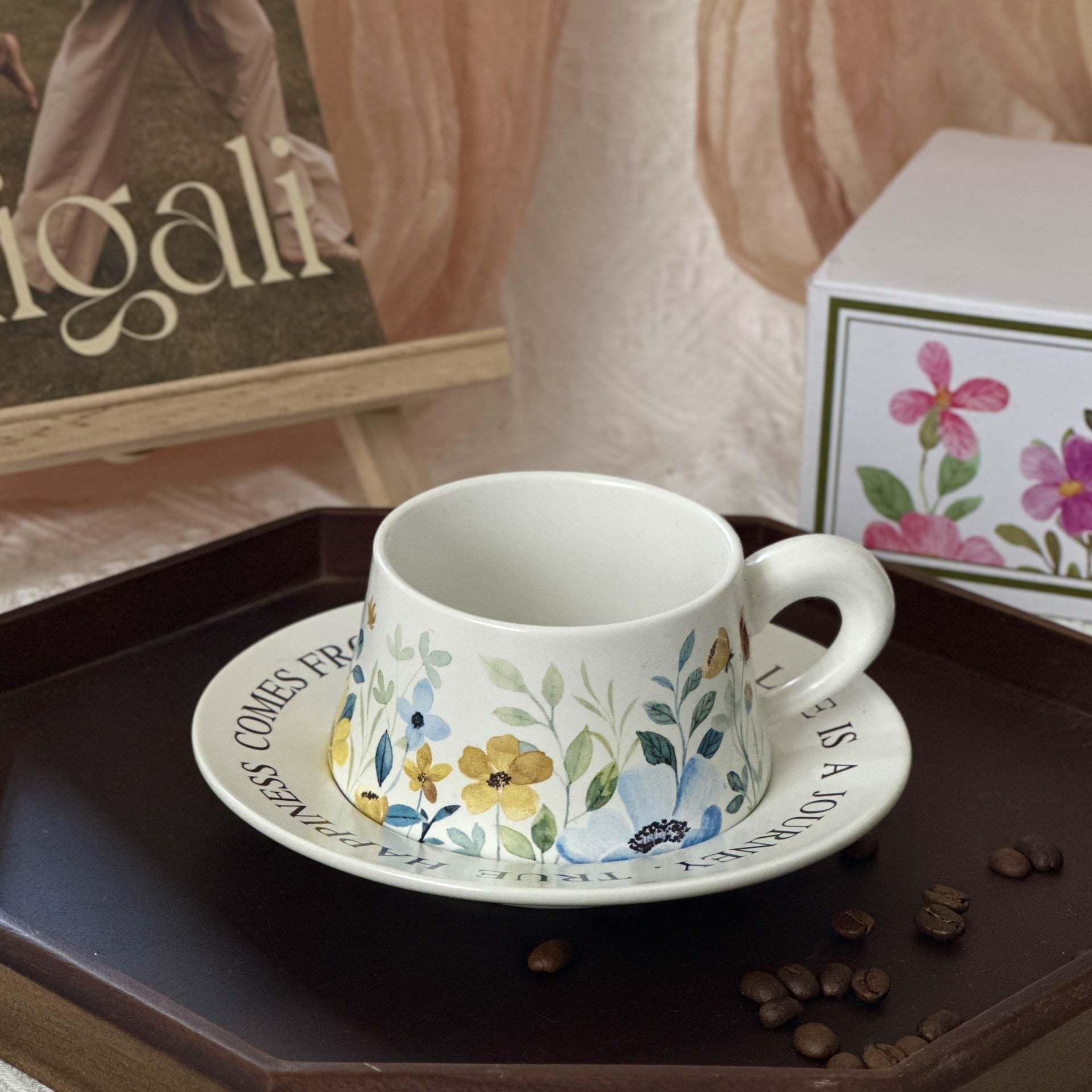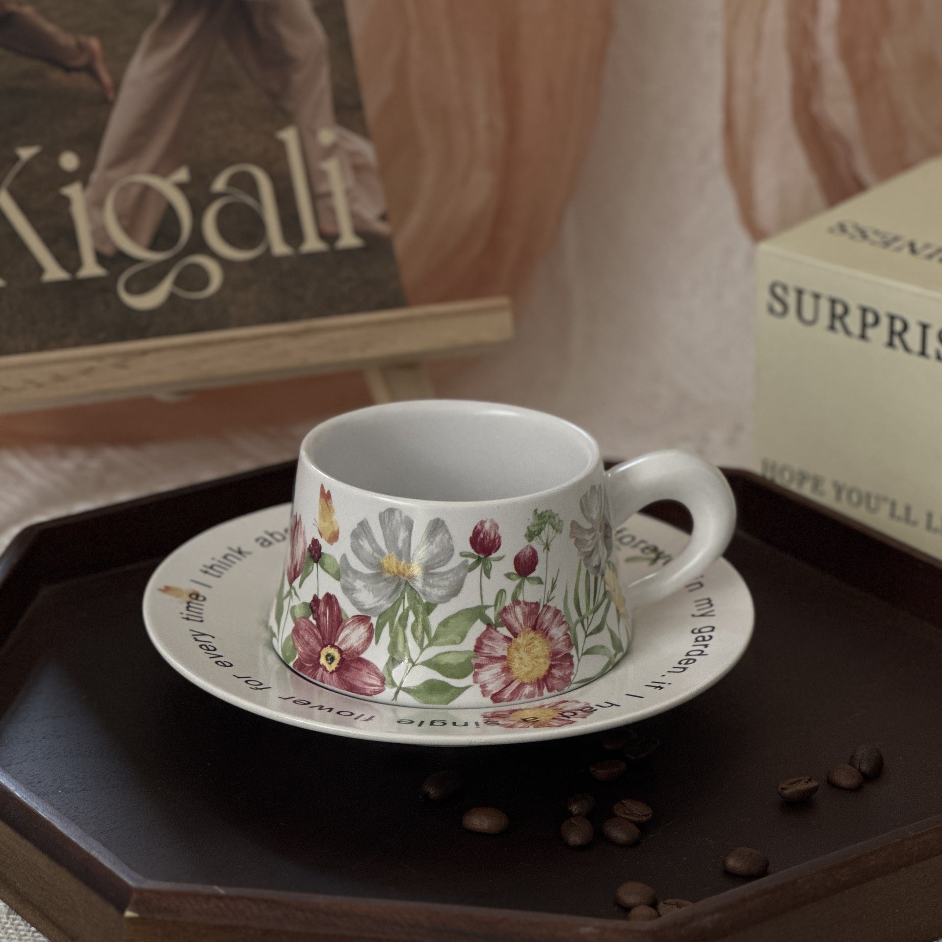 Floral Garden Ceramic Coffee Mug & Saucer Set, Hand-Painted Tea Cup with Gift Box for Women, Elegant Bone China Cup, Luxury Wedding & Housewarming Present