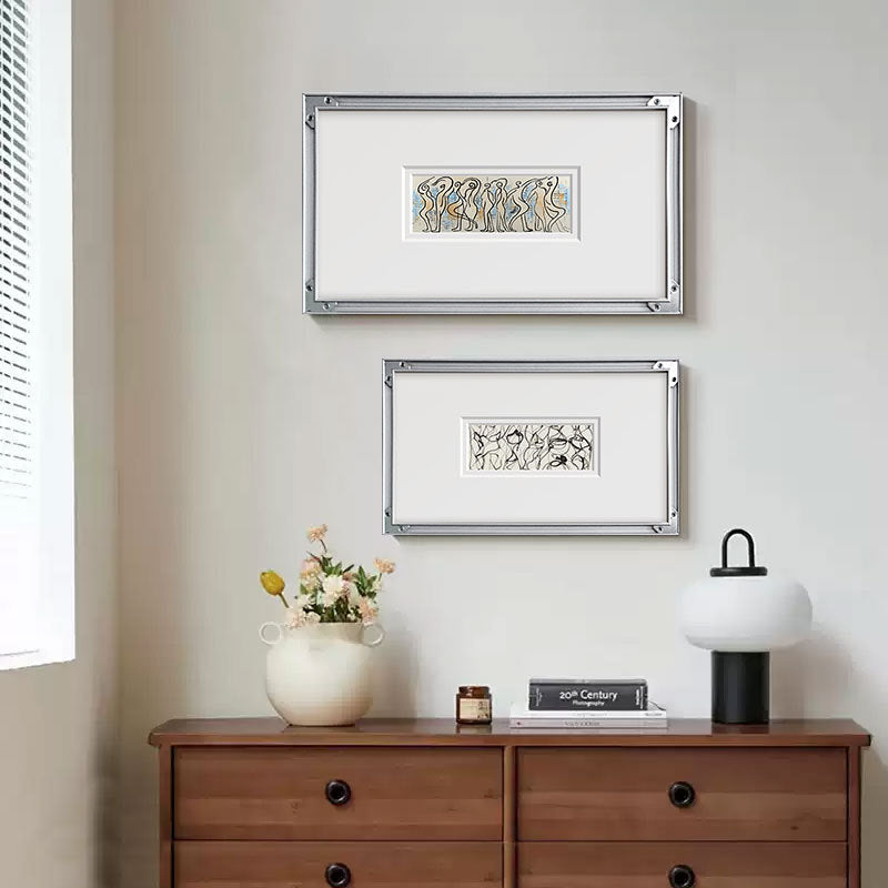 French Elegant Minimalist Wall Art, Silver Aluminum Frame with Double Matting (Reverse Mount)