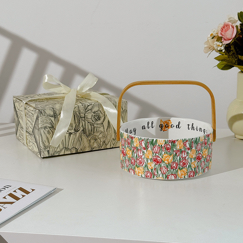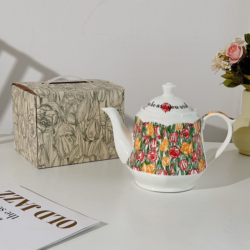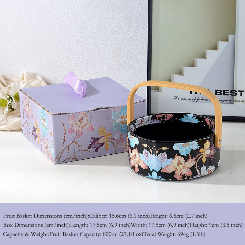 Garden Fruit Basket Ceramic Drinkware Set - Premium Porcelain Cold Water Kettle, Coffee Mug & Cup Saucer, Rustic Modern Farmhouse Style, Microwave & Dishwasher Safe, Ideal for Daily Use & Housewarming Gift