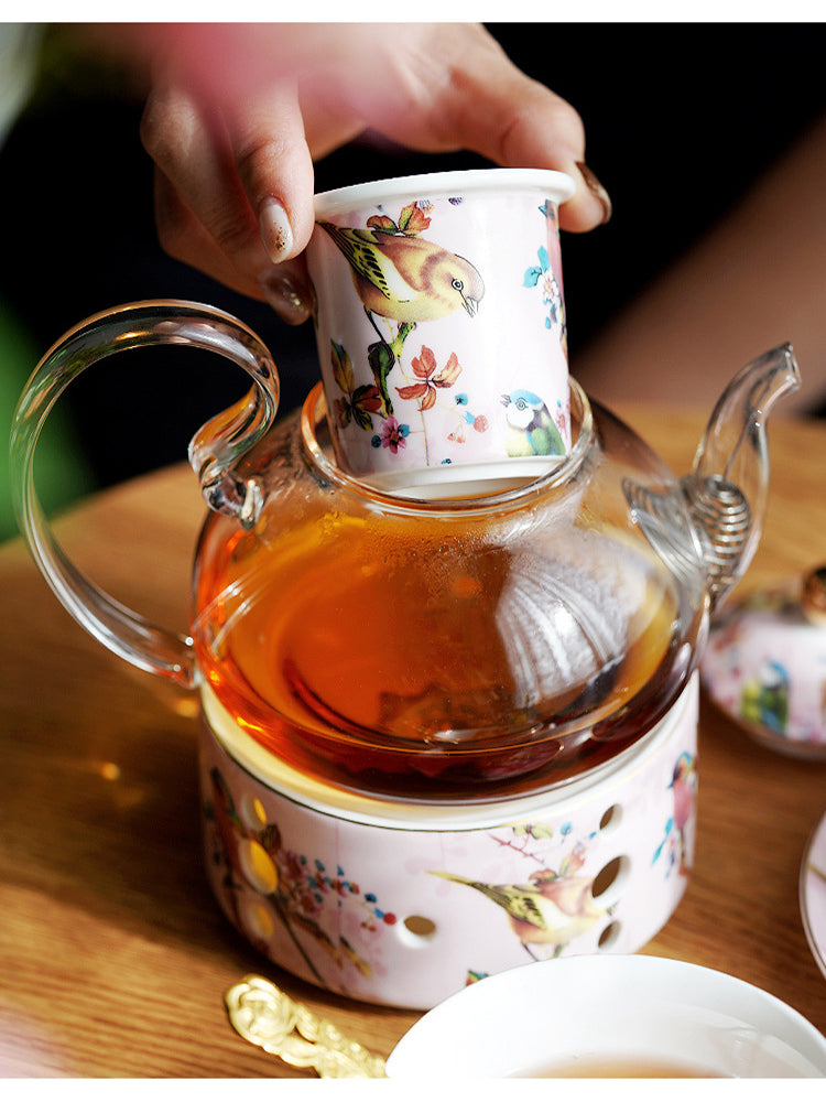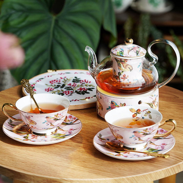 "Luxury Ceramic Afternoon Tea Set with Candle Warmer - English High Tea & French Style, Fruit Infuser Teapot, Floral Teacups, Elegant Tea Service for Home Ambiance & Gift-Giving"