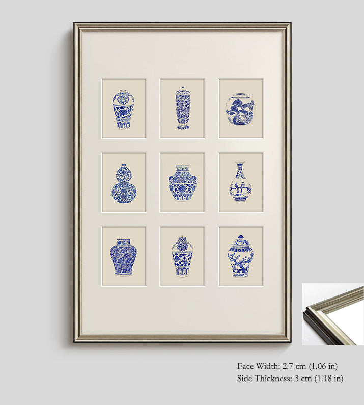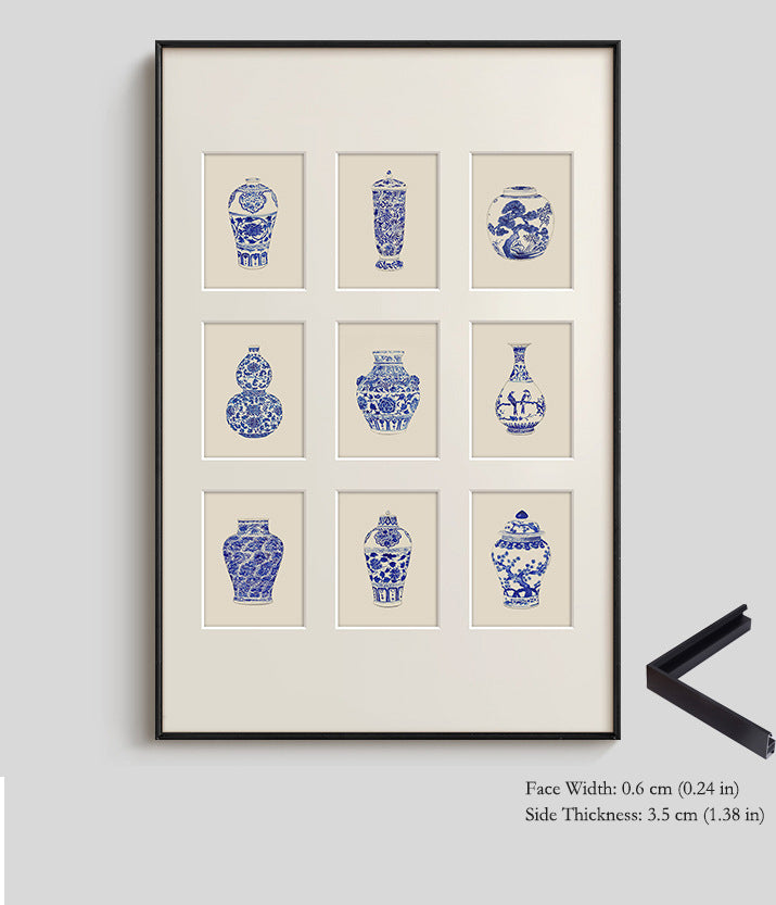 "Sino-French Blue White Porcelain Vase Wall Art, Modern Chinoiserie Canvas Print, Oriental Aesthetic Framed Painting for Living Room, Dining Room, Entryway Decor, Luxury Botanical Floral Hanging Art"