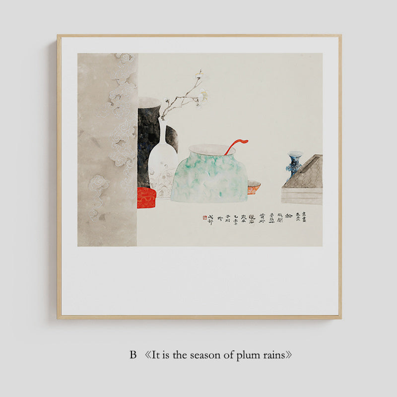 "Tranquil Moments Wall Art - New Chinese Style Wabi-Sabi Square Canvas Print, Zen Oriental Ink Painting with Nature Inspired Design for Home Decor"