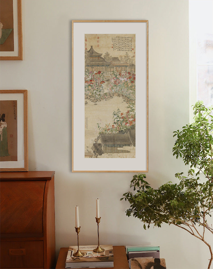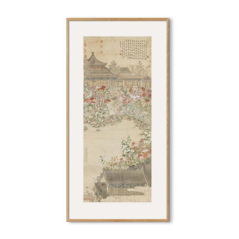 "Zhang Ruoai Qing Dynasty Flower Painting, Chinese Vintage Botanical Wall Art, Asian Ink Wash Canvas Print, Wabi-Sabi Solid Wood Frame, Oriental Living Room Sofa Background Mural, Autumn Poetry Scroll"